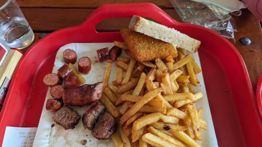 La zona tiene varios restaurantes tipo barbacoa y puestos con comida y bebida y souvenirs. Además de aseos gratuitos. Así que es aquí donde te recomendamos que pases al menos un par de horas paseando por el bosque, navegando y ya aprovechar para comer.