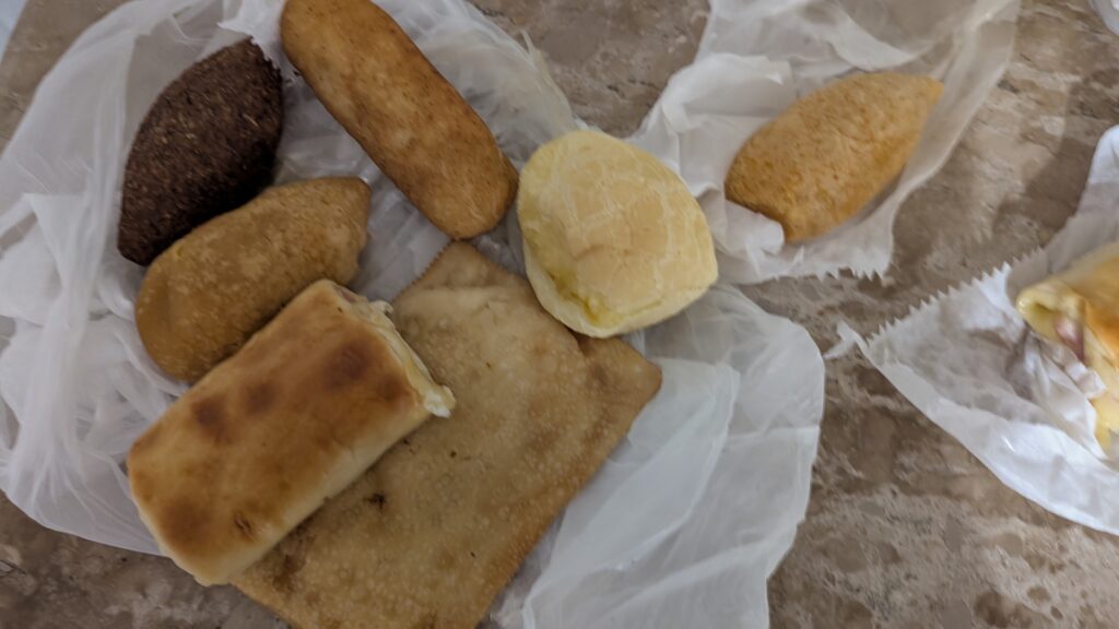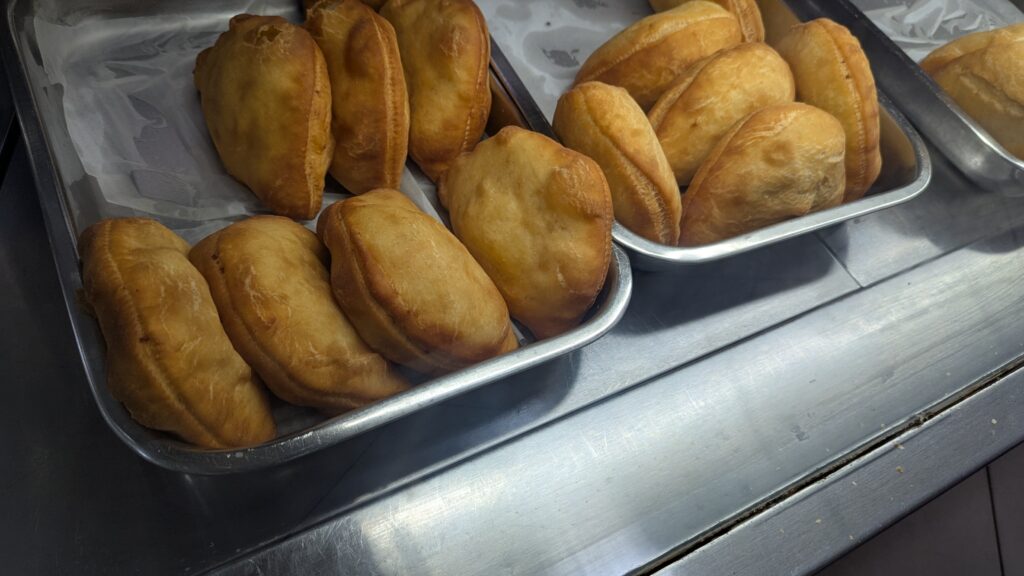 Para cenar nosotros aprovechamos la parada del minibús a la vuelta en un área de servicio para comprar varios pasteis y comerlos en el hotel al llegar.